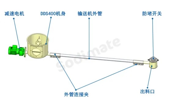 Sodimate(索得曼)设计的螺旋输送机是专门为两点之间的散粉输送而设计的,它的优势在于不会改变输送的精度或破坏粉料粒子。通常将它装配在 Sodimate(索得曼)的不同类型的卸料机( 料仓破拱卸料机、吨袋卸料投加站、小袋人工投料站 )下方,它能以水平或垂直的任何角度输送干粉和散装小颗粒物体。该螺旋输送机的尺寸和总长度将根据所输送物料的性质来选定。通常,一条柔性螺旋输送机的长度可从1米至20米不等。